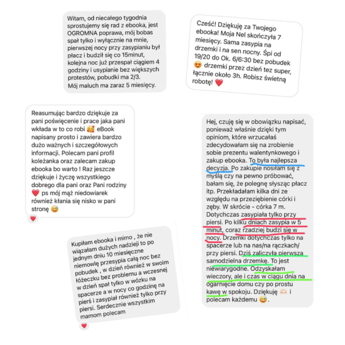 Jeśli te myśli towarzyszą Ci codziennie, ten Ebook jest dla Ciebie ratunkiem. Stworzyłam praktyczny, pisany przewodnik, który krok po kroku przeprowadzi Cię przez proces nauki samodzielnego zasypiania, eliminując zgadywanie i wprowadzając w Wasze życie upragnioną przewidywalność.