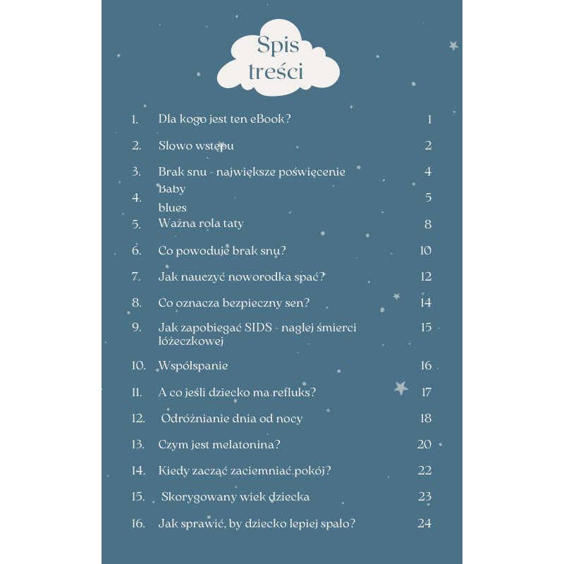 (Regulamin sklepu oraz warunki użytkowania znajdują się na stronie: https://sleeplikeababy.eu/regulamin/. Produkt przeznaczony jest wyłącznie dla jednej osoby, która go kupiła. Zabronione jest kopiowanie, udostępnianie, a także rozpowszechnianie jego treści.)