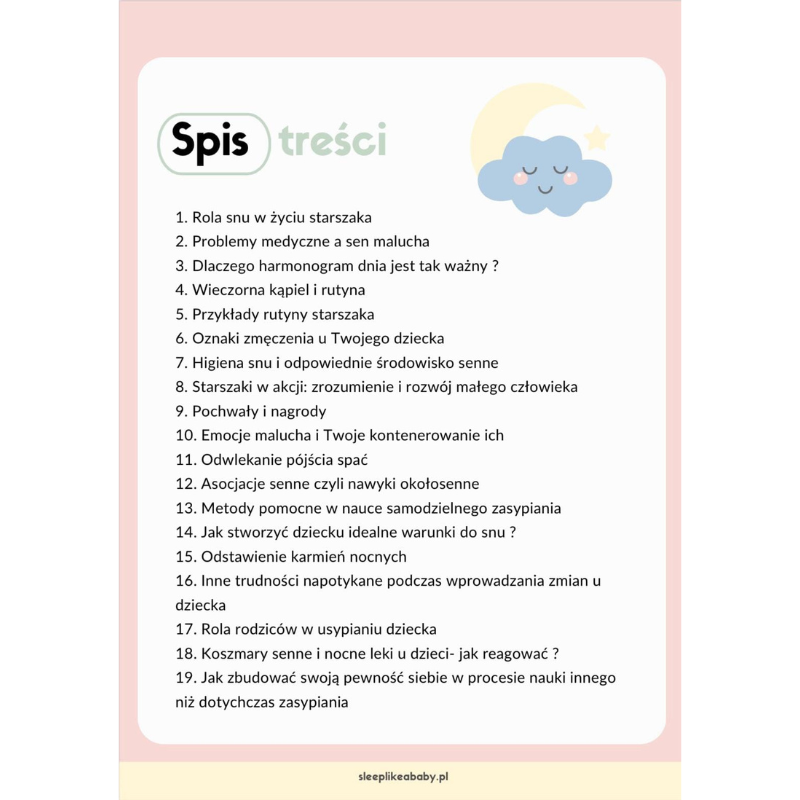 (Regulamin sklepu oraz warunki użytkowania znajdują się na stronie: https://sleeplikeababy.eu/regulamin/. Produkt przeznaczony jest wyłącznie dla jednej osoby, która go kupiła. Zabronione jest kopiowanie, udostępnianie, a także rozpowszechnianie jego treści.)